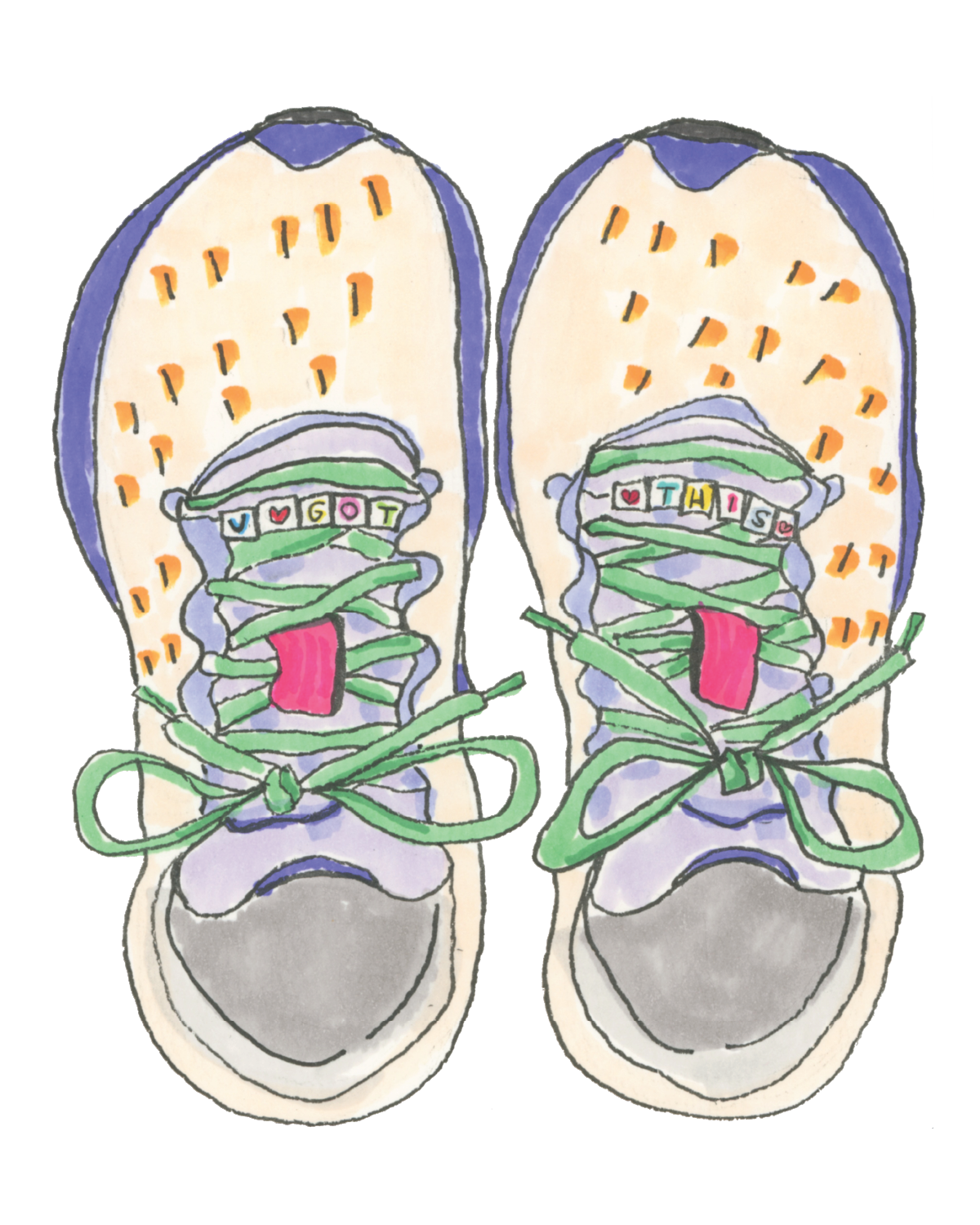 A pep talk you can hold in your hands. U Got This Shoes features a pair of hand‑drawn running shoes adorned with tiny shoe‑charms that spell out the message every runner needs in their pocket (or on their laces!) when the miles get real: u got this.